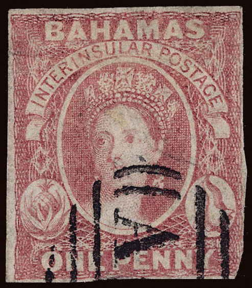 Description 1 (2) 1859 1d dull lake Q Victoria, unwmkd, thin paper, imperf, four full to close margins, lightly canceled.