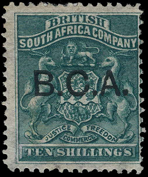 Description 1-13, 6a, 9a (1-13, 6a, 9a) 1891-95 1-10' Rhodesia Coat of Arms overprinted "B.C.A.", cplt (15) to the 10' with all shades.