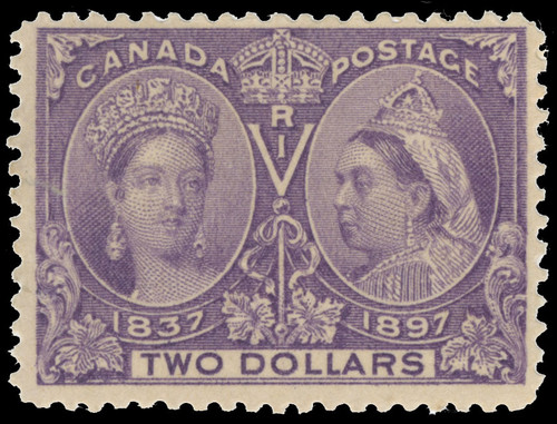 62 (137) 1897 $2 deep violet Q Victoria Jubilee, perf 12, rich vivid color--scarce on this value.