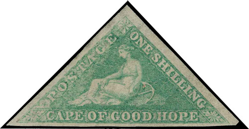 15 (21) 1863 1' bright emerald-green Cape Triangle, wmkd Anchor, imperf, full margins, rich color.