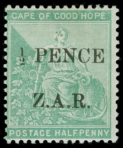 Description N1 (1) 1899 ½d green Hope overprinted " ½ PENCE Z.A.R." (10.5 mm high), only 2400 (40 panes) printed, most of which were used.