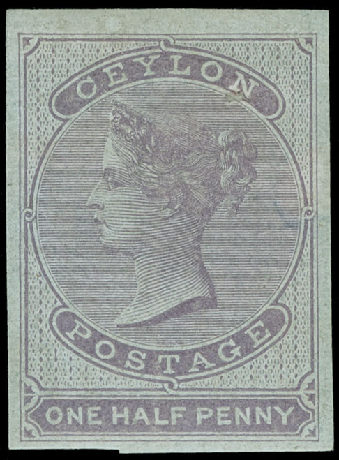 15 (16) 1857 ½d reddish lilac Q Victoria on blued glazed paper, unwmkd, imperf, four margins, a choice and very rare mint stamp, undercatalogued, seldom seen.