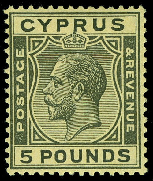 109 (117a) 1928 £5 black on yellow K George V, wmkd MSCA, perf 14, seldom seen.
