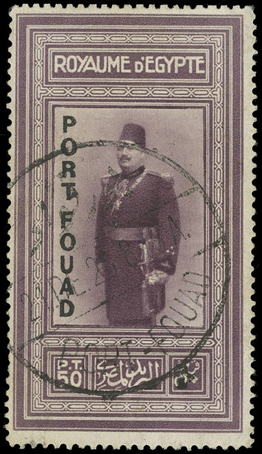Description 121-24 (141-44) 1926 5m-50pi Inauguration of Port Fouad overprints^, cplt (4), key set of the country, as only 1500 of the 50pi were printed and the whole issue sold out on the opening day of sale in a matter of hours, certificate is for the set