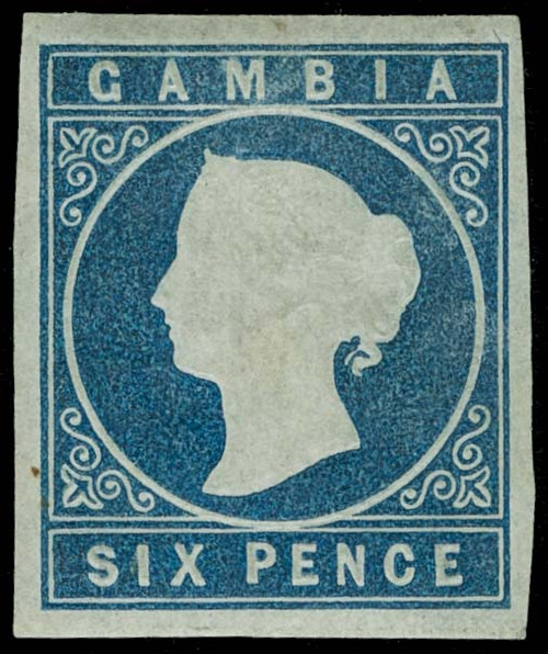 4a var (7w) 1874 6d deep blue Q Victoria embossed, VARIETY - wmk CC inverted, very scarce, imperf, four large margins.