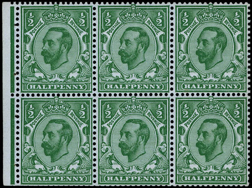 155a-56a (335-36) 1912 ½d-1d K George V booklet panes of 6, wmkd Simple Cypher (SG Type 100), perf 15x14, cplt (2), center top stamp on each is OG, LH, the other 10 stamps are OG, NH.
