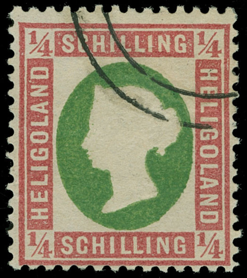 Description 7 (5) 1873 ¼sch rose and green Q Victoria Head Die I, perf 13½x14½, light double-ring cancel.