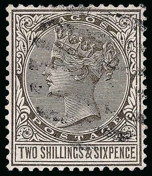 33 (27) 1886 2'6d olive-black Q Victoria^, wmkd CA, perf 14, rare as only 900 issued, lightly canceled and exceptionally well centered.