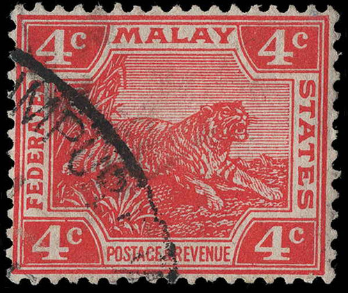 Description 44 var (38b) 1922 4¢ scarlet Tiger, Die II, VARIETY - wmk MCA upright, scarce later printing from the last year of issue.
