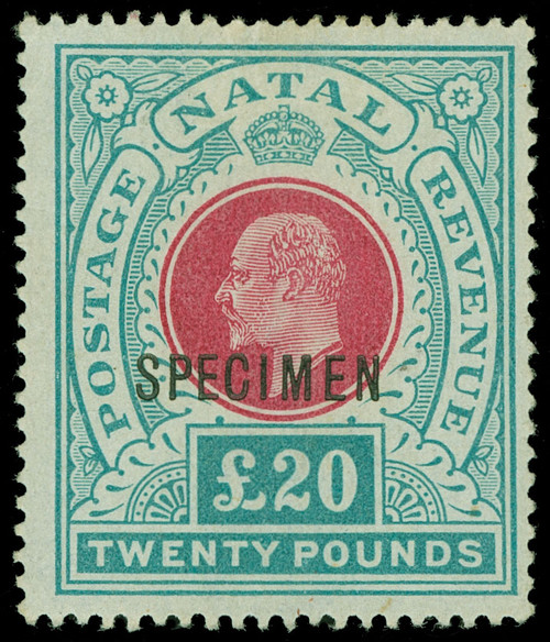 100 var listed (145bs) 1902 £20 red and green K Edward VII handstamped "SPECIMEN" in black, wmkd CC, perf 14.