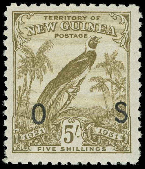 Description O12-22 (O31-41) 1931 1d-5' Bird of Paradise Officials^, dated scrolls, overprinted "OS", perf 11, cplt (11), undercatalogued.