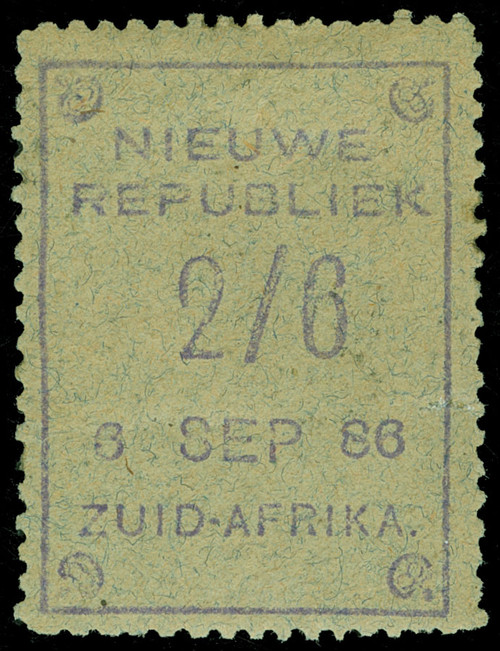 28a var footnoted (37) 1886 2/6 violet on blue granite (6 SEP 86), scarce date.