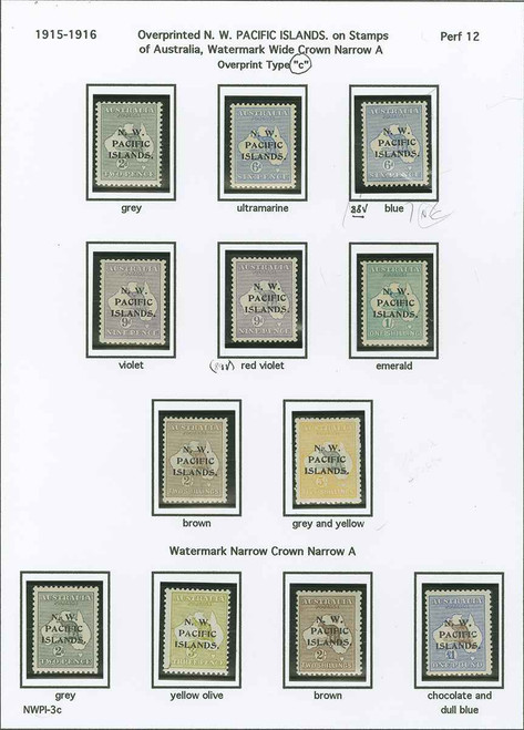 13, 18-26, 18 var, 19 var (86, 88-99, 88 var, 89 var) 1915-16 2d, 3d-£1 Kangaroo^ of Australia overprinted "N. W. PACIFIC ISLANDS." SG Type 6c - a matched set of 10 values (plus two unlisted shades) each Type "c" (both "S" with small head and large tail).