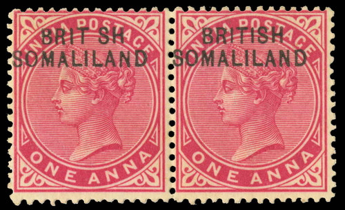 2b (2a) 1903 1a carmine Q Victoria stamp of India overprinted "BRITISH SOMALILAND", ERROR - "BRIT SH" for "BRITISH", in horizontal pair with normal.