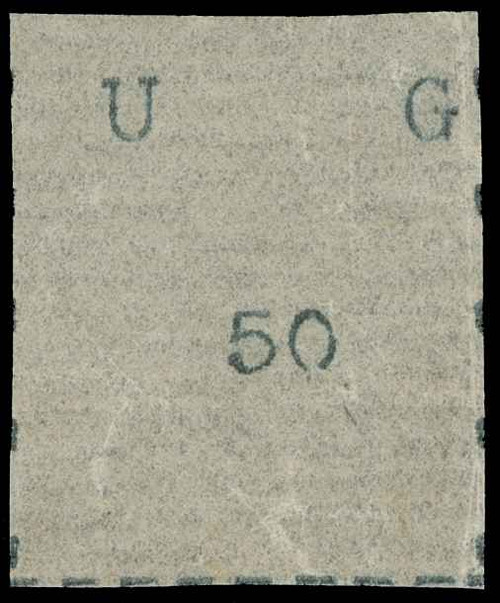 5 (5) 1895 50 (c) black Missionary typewritten, wide letters and format (20-26 mm), imperf, frame-line dashes showing on three sides, ex-Dunston and Dr. Gene Scott collections.