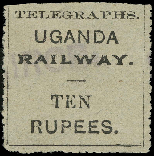 (T11a) 1902 10R black Uganda Railway Telegraphs SG Type T2 on greyish blue, VARIETY - stop for comma after lower "TELEGRAPHS", lower half with "Nairobe" straight-line cancel, very rare and undercatalogued.